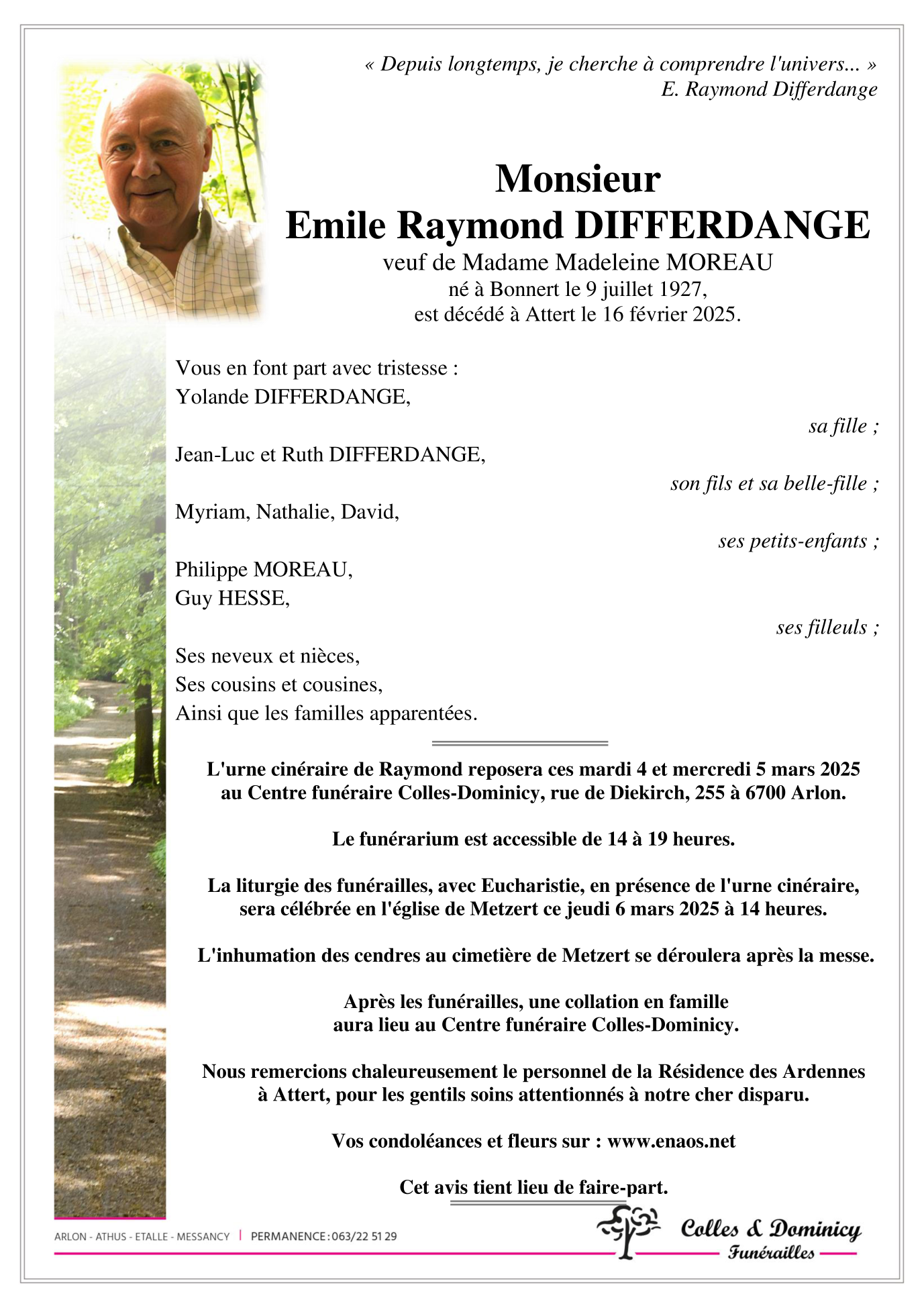 Monsieur Emile Raymond DIFFERDANGE