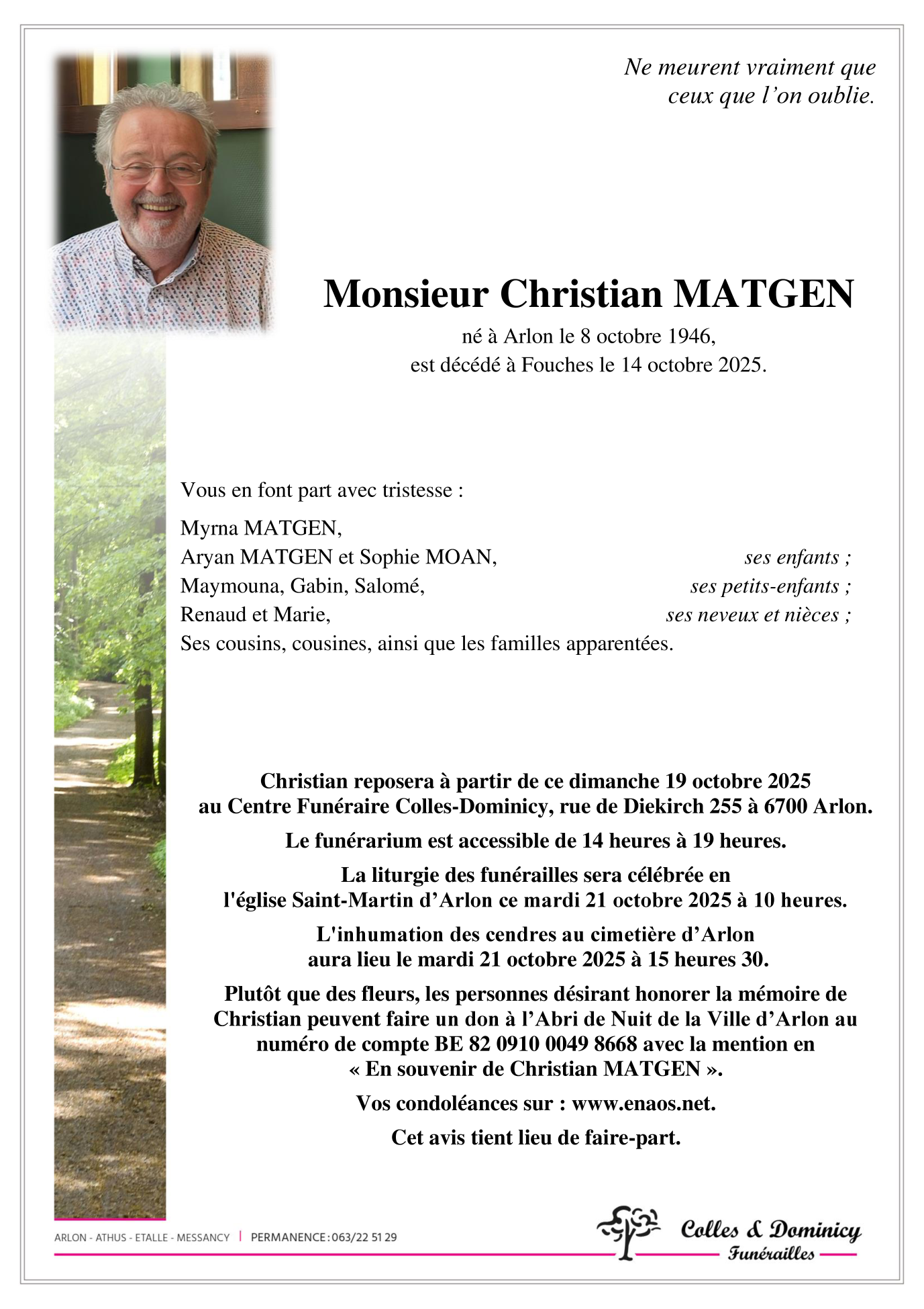Né à Arlon (6700) le mardi 8 octobre 1946
