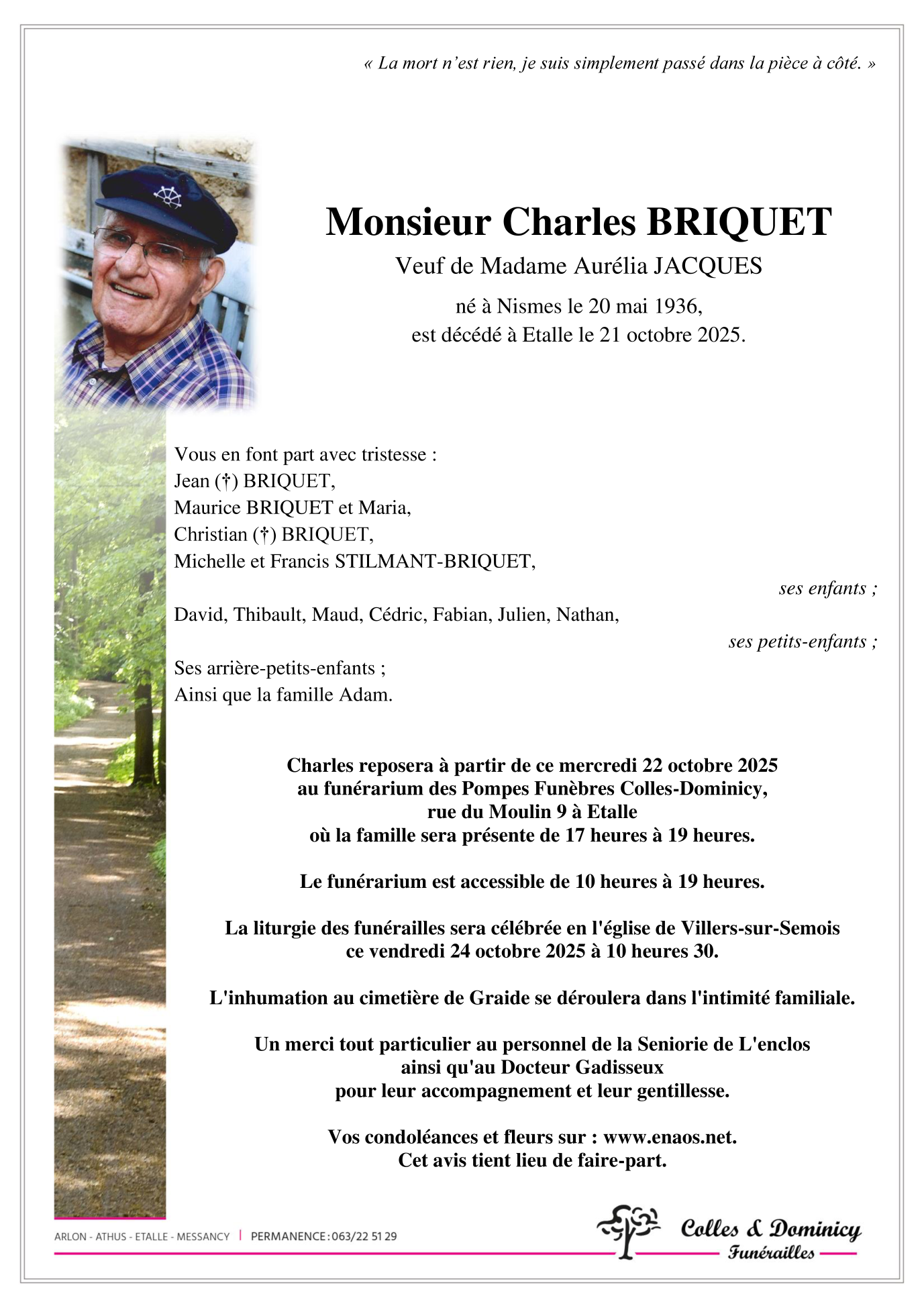 Décédé à Etalle (6740) le mardi 21 octobre 2025 à l'âge de 89 ans