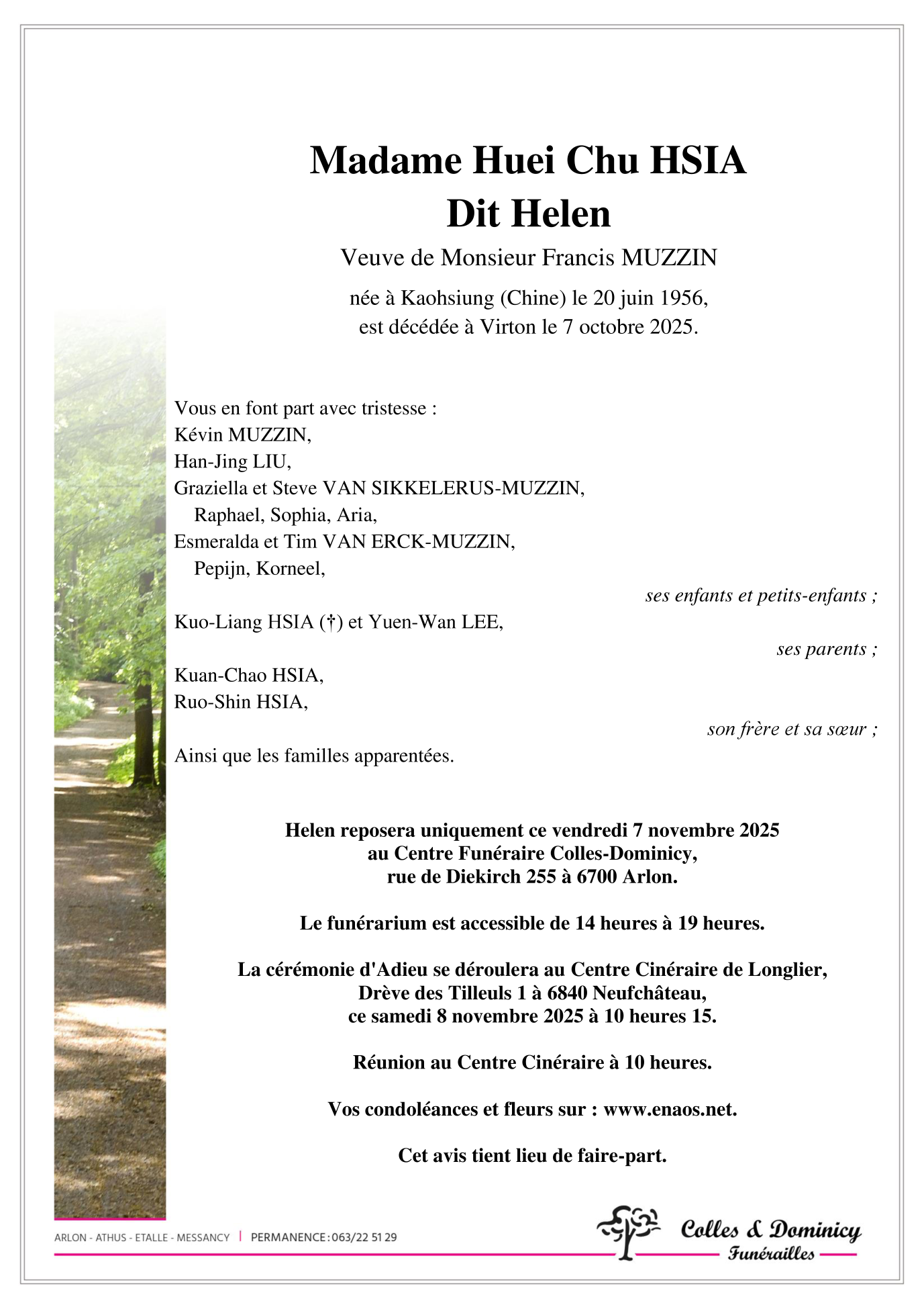 Décédée à Saint-Mard (6762) le mardi 7 octobre 2025 à l'âge de 69 ans