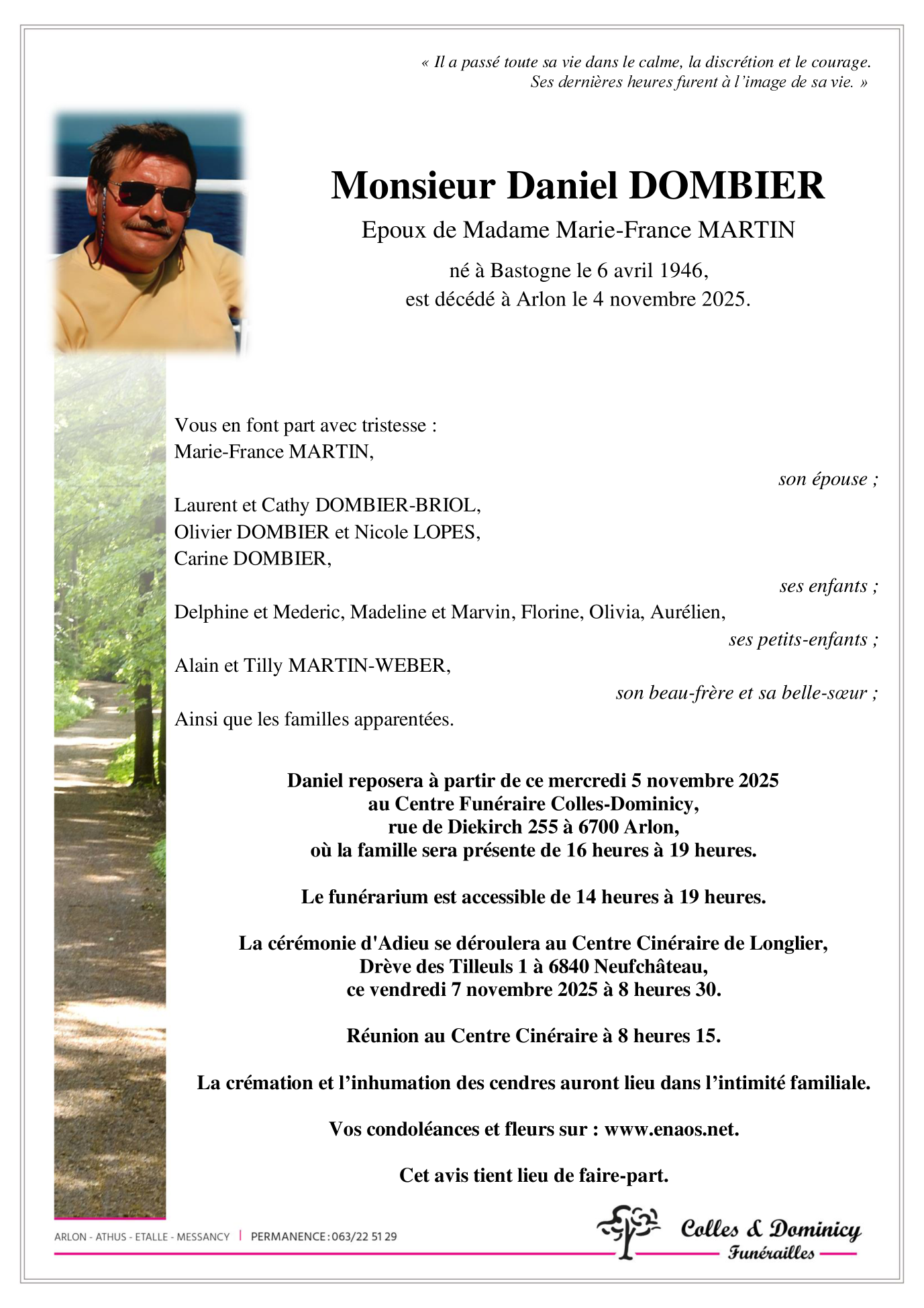 Décédé à Arlon (6700) le mardi 4 novembre 2025 à l'âge de 79 ans