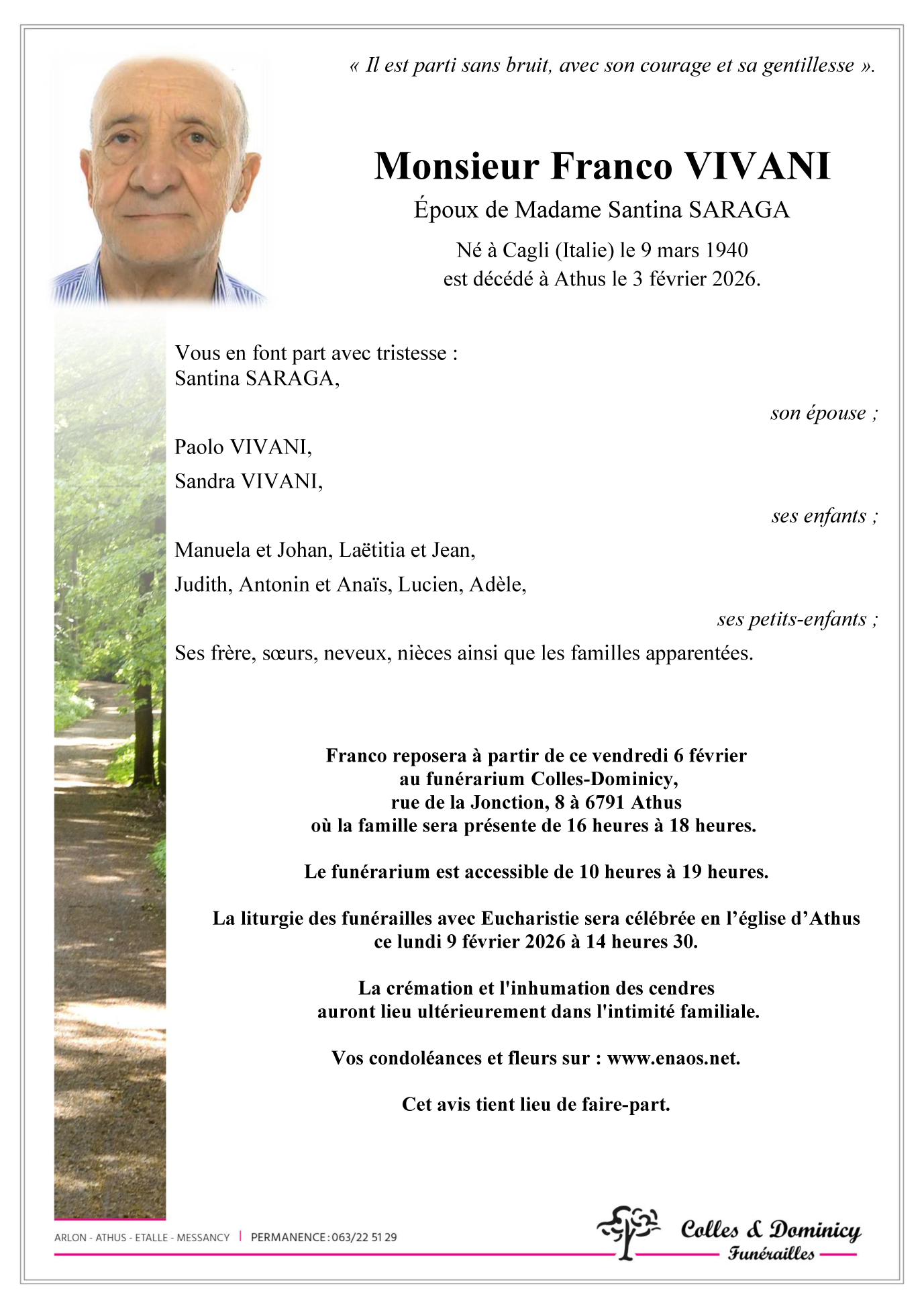 Décédé à Athus (6791) le mardi 3 février 2026 à l'âge de 85 ans