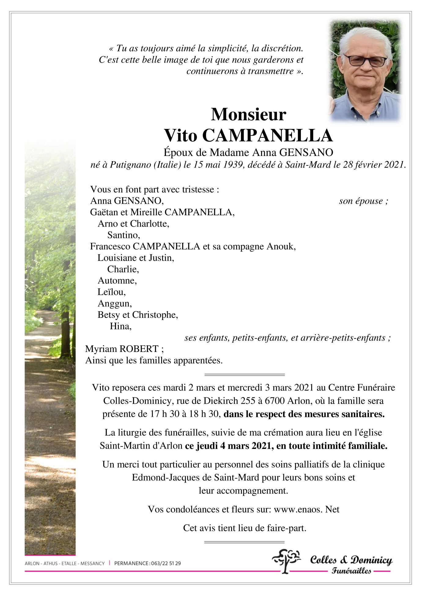 Décédé à Saint-Mard (6762) le dimanche 28 février 2021 à l'âge de 81 ans