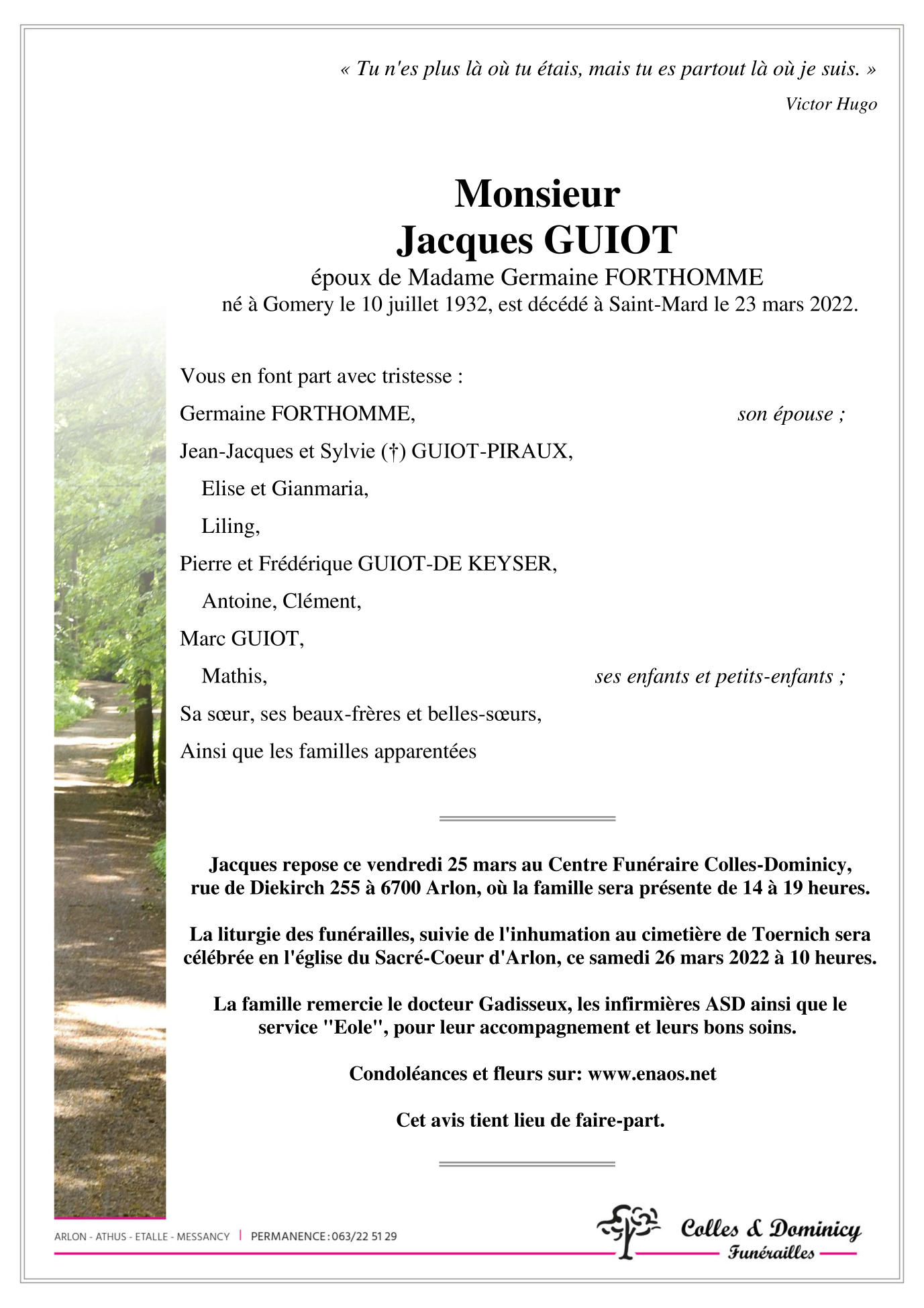 Décédé à Saint-Mard (6762) le mercredi 23 mars 2022 à l'âge de 89 ans