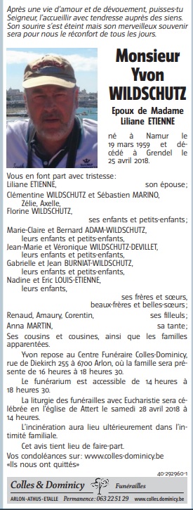 Décédé à Grendel (6717) le mercredi 25 avril 2018 à l'âge de 59 ans