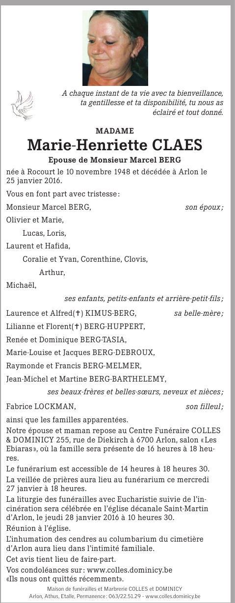 Madame Marie-Henriette CLAES