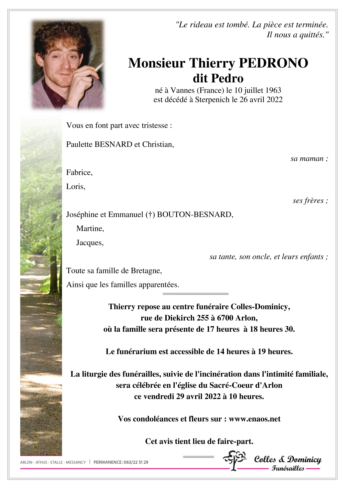 Décédé à Sterpenich (6700) le mardi 26 avril 2022 à l'âge de 58 ans