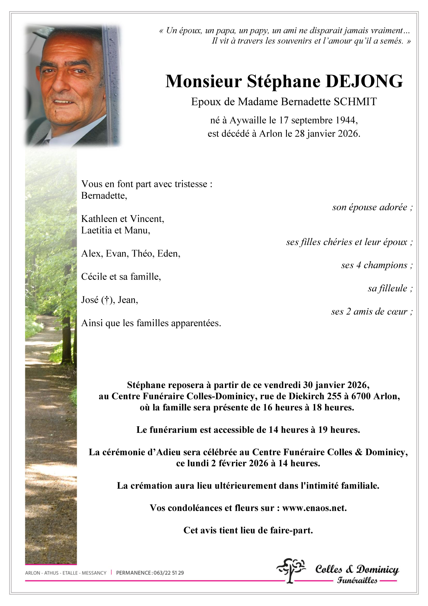 Décédé à Arlon (6700) le mercredi 28 janvier 2026 à l'âge de 81 ans
