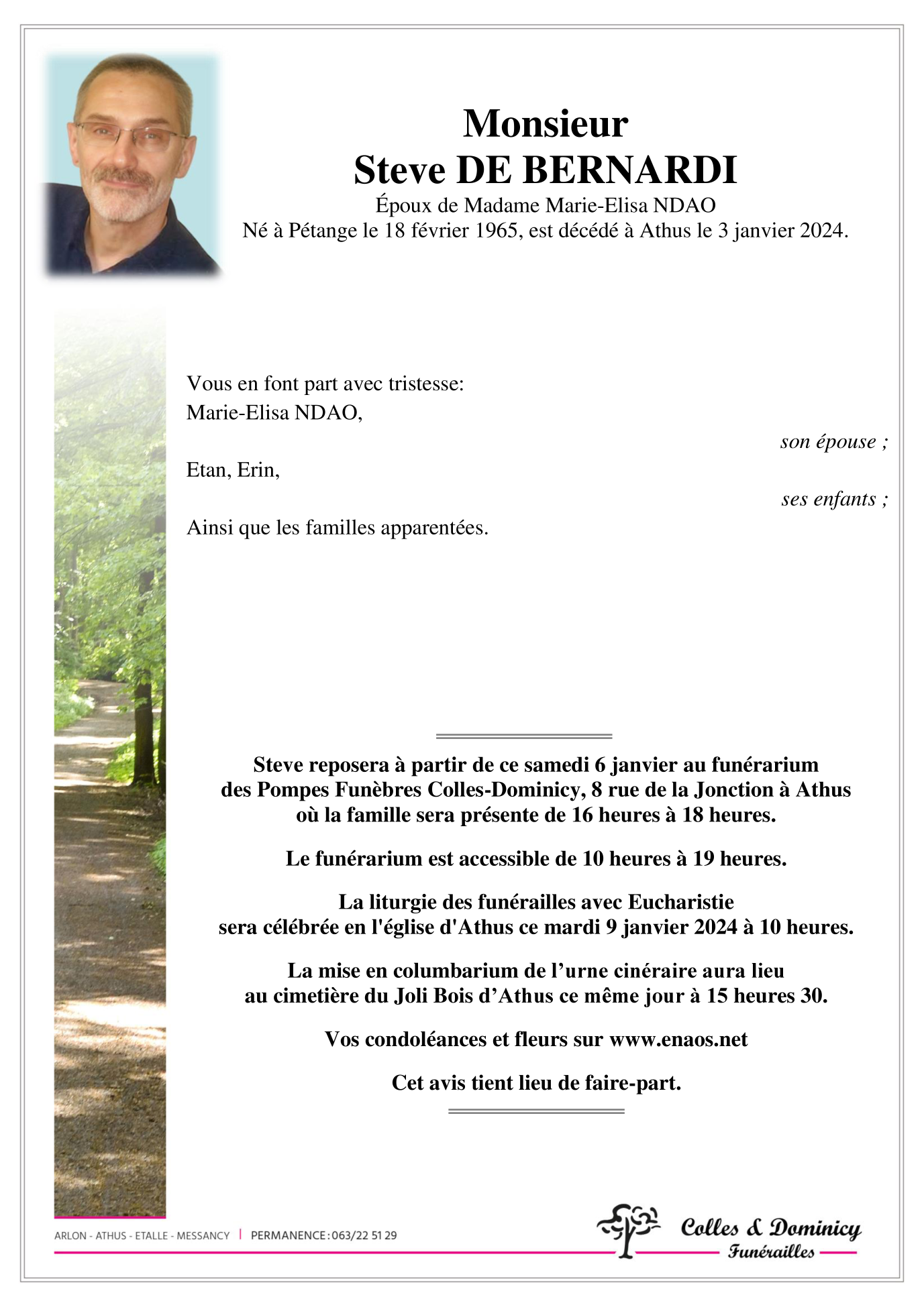 Décédé à Athus (6791) le mercredi 3 janvier 2024 à l'âge de 58 ans