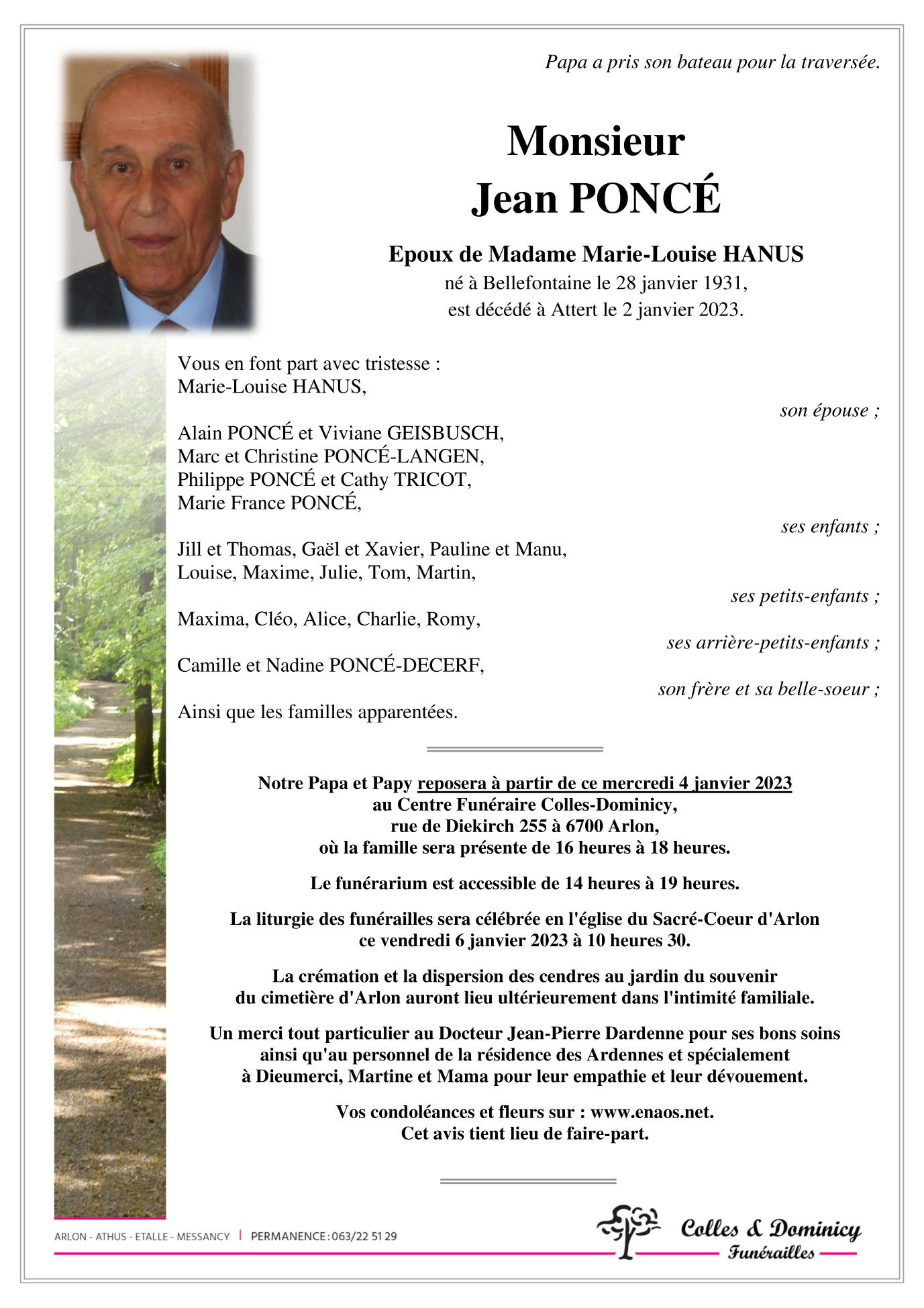 Décédé à Attert (6717) le lundi 2 janvier 2023 à l'âge de 91 ans