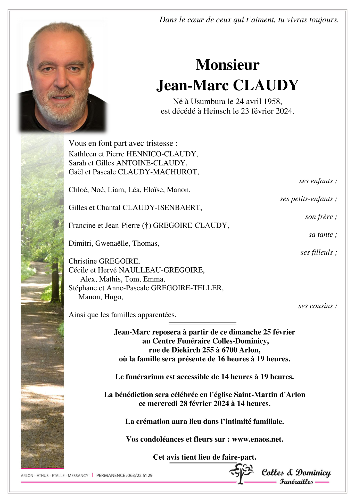 Décédé à Heinsch (6700) le vendredi 23 février 2024 à l'âge de 65 ans