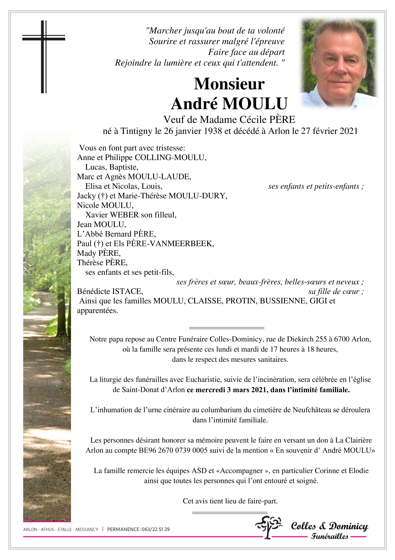 Décédé à Arlon (6700) le samedi 27 février 2021 à l'âge de 83 ans