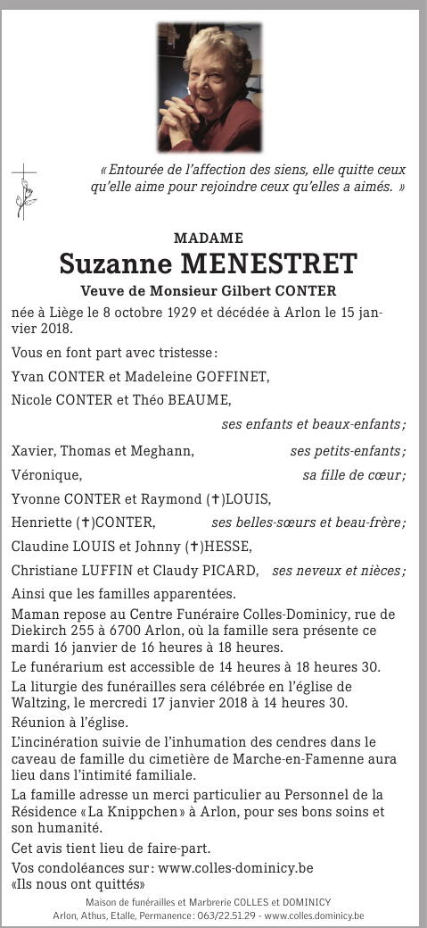 le lundi 15 janvier 2018 à l'âge de 88 ans