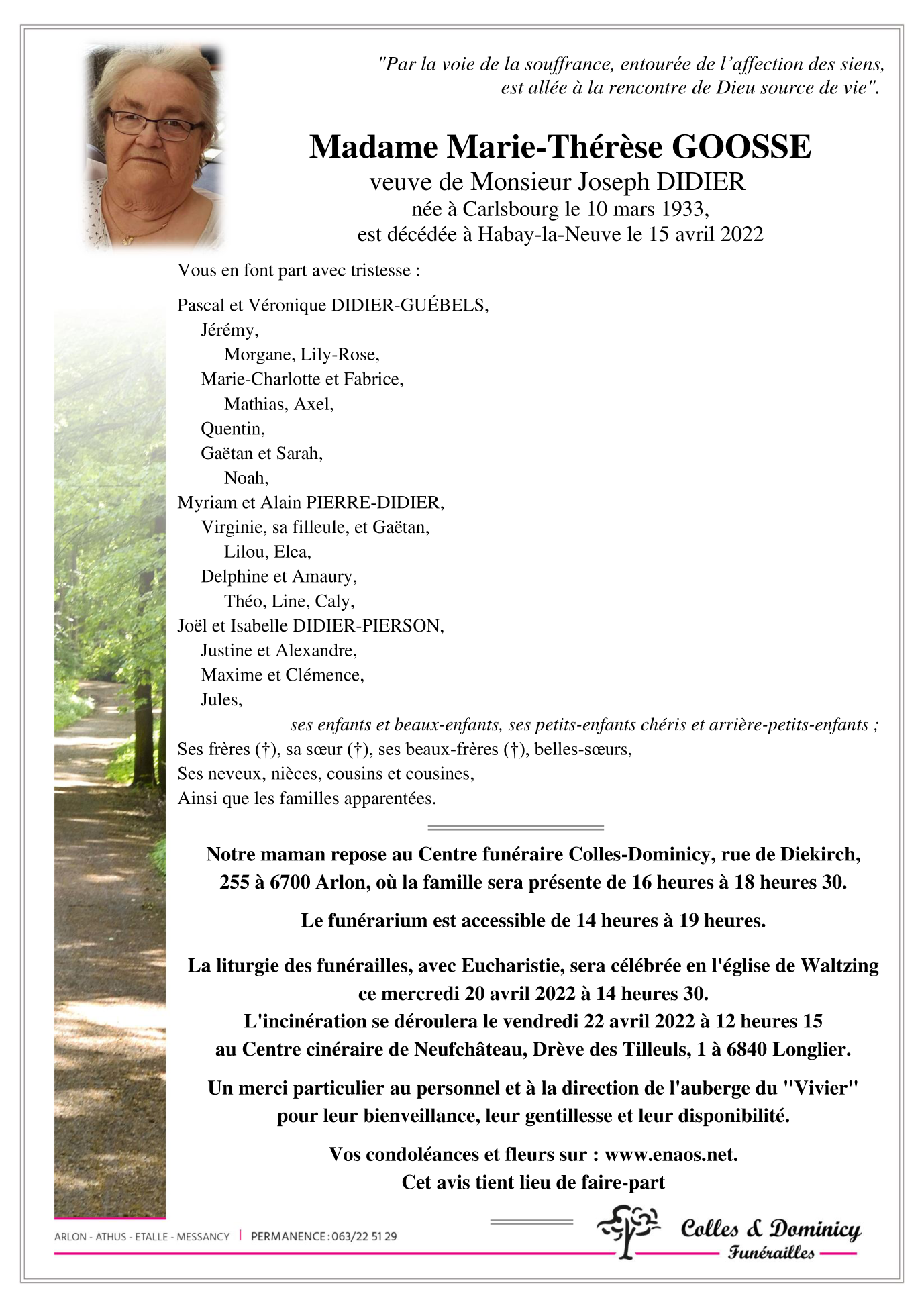 Veuve de Monsieur Joseph DIDIER