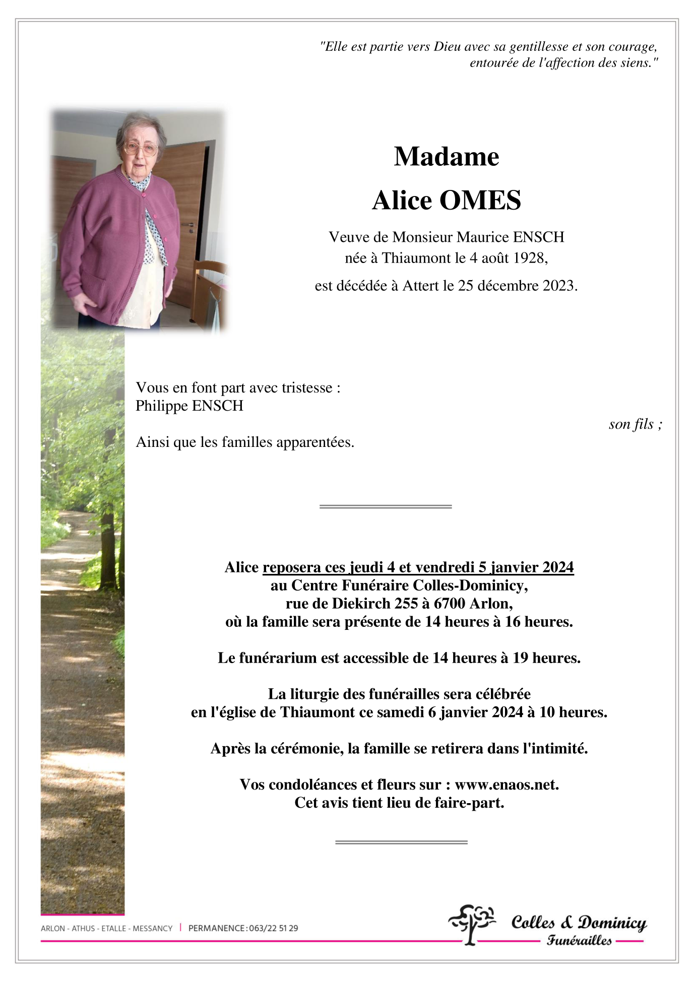 Veuve de Monsieur Maurice ENSCH