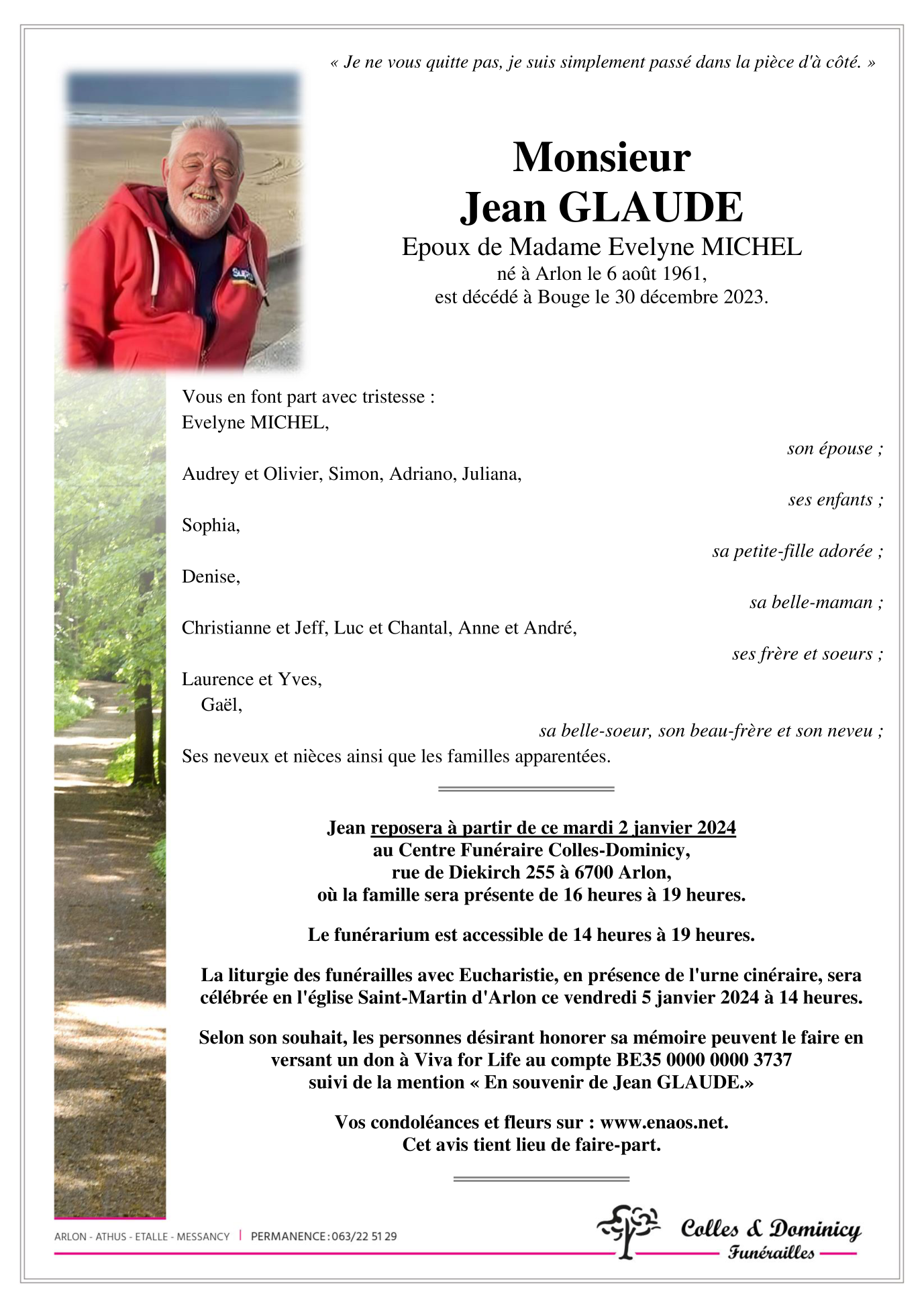 Décédé à Bouge (5004) le samedi 30 décembre 2023 à l'âge de 62 ans