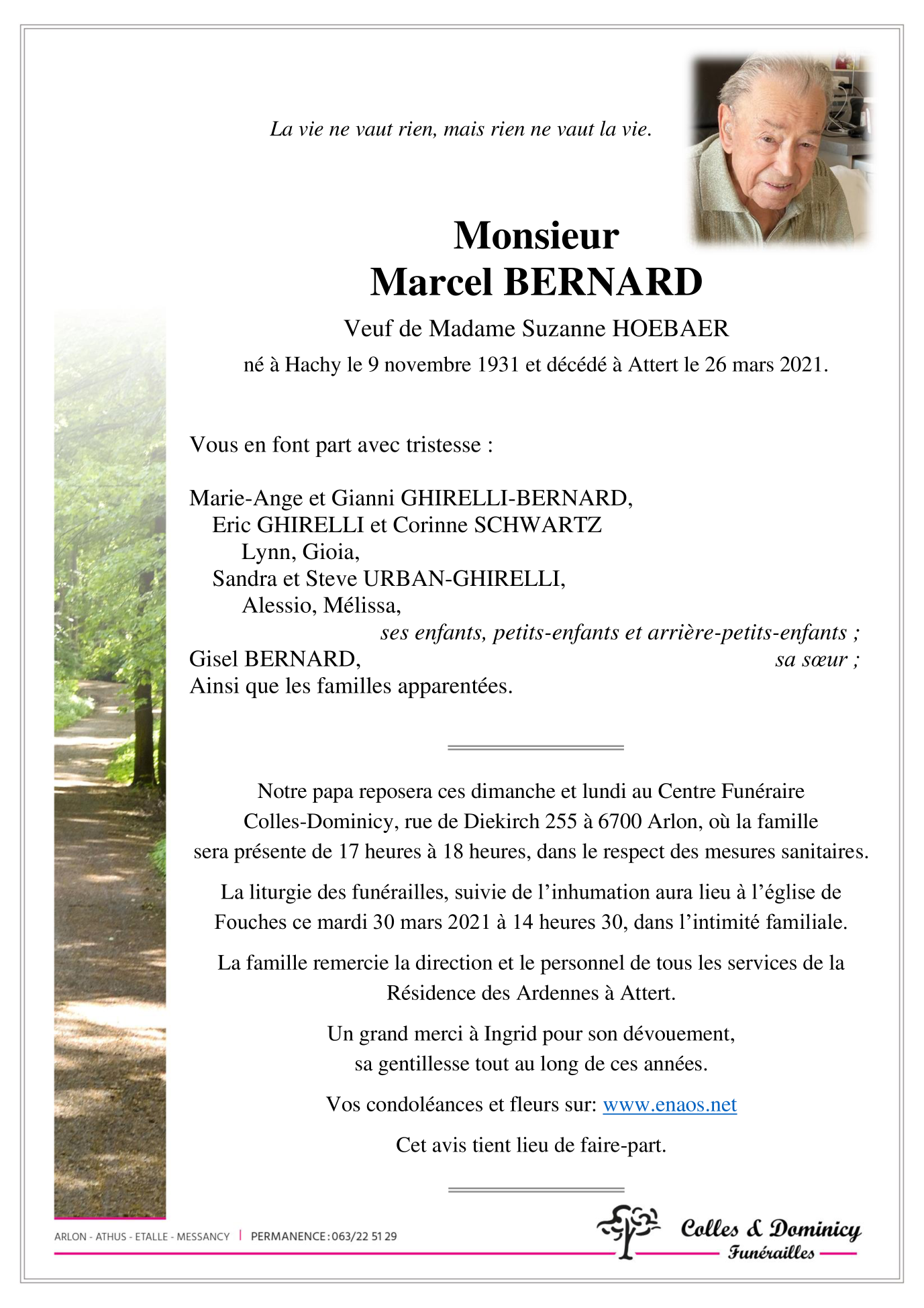 Décédé à Attert (6717) le vendredi 26 mars 2021 à l'âge de 89 ans