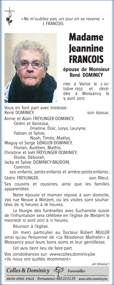 le dimanche 9 avril 2017 à l'âge de 83 ans