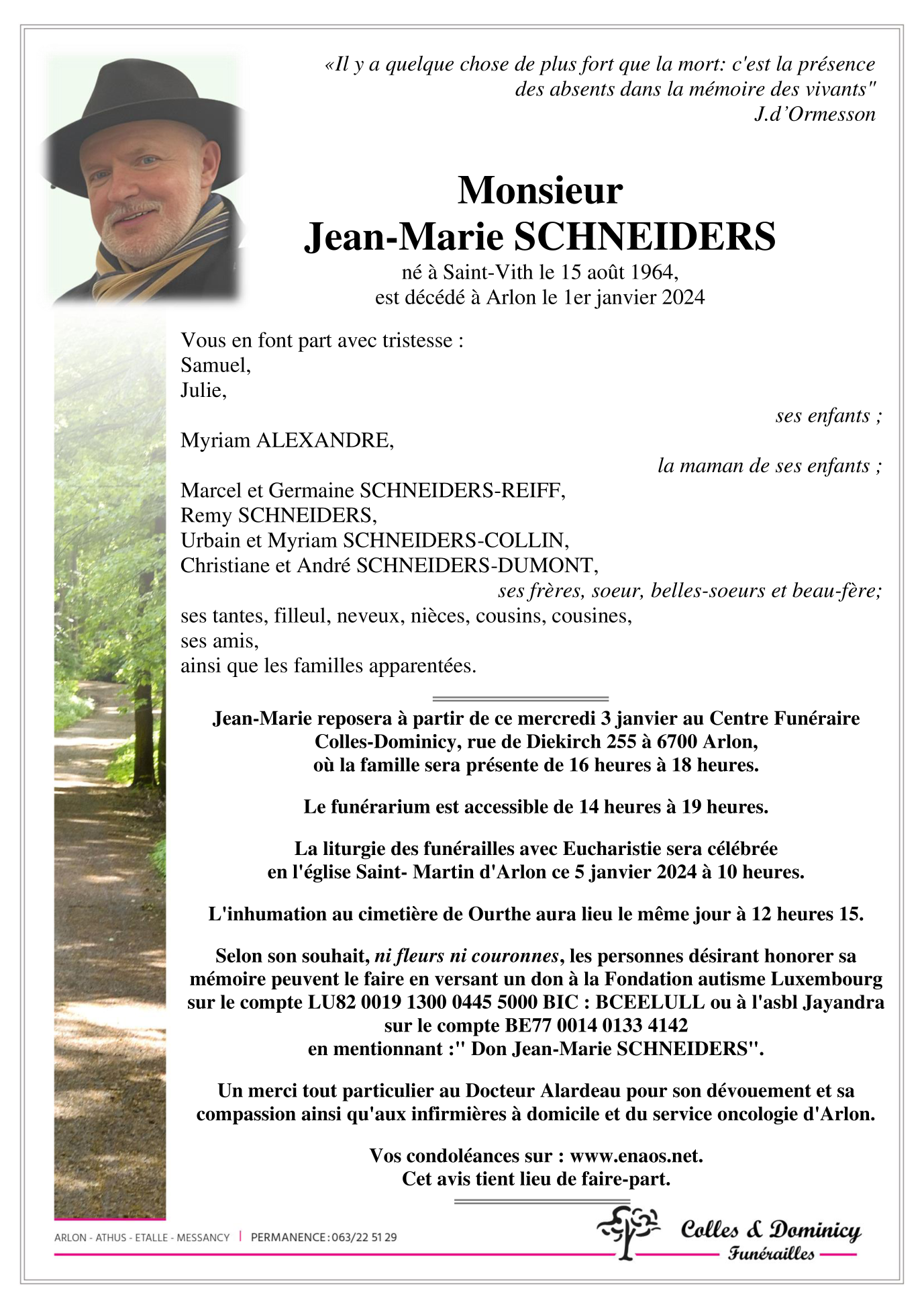 Décédé à Arlon (6700) le lundi 1 janvier 2024 à l'âge de 59 ans