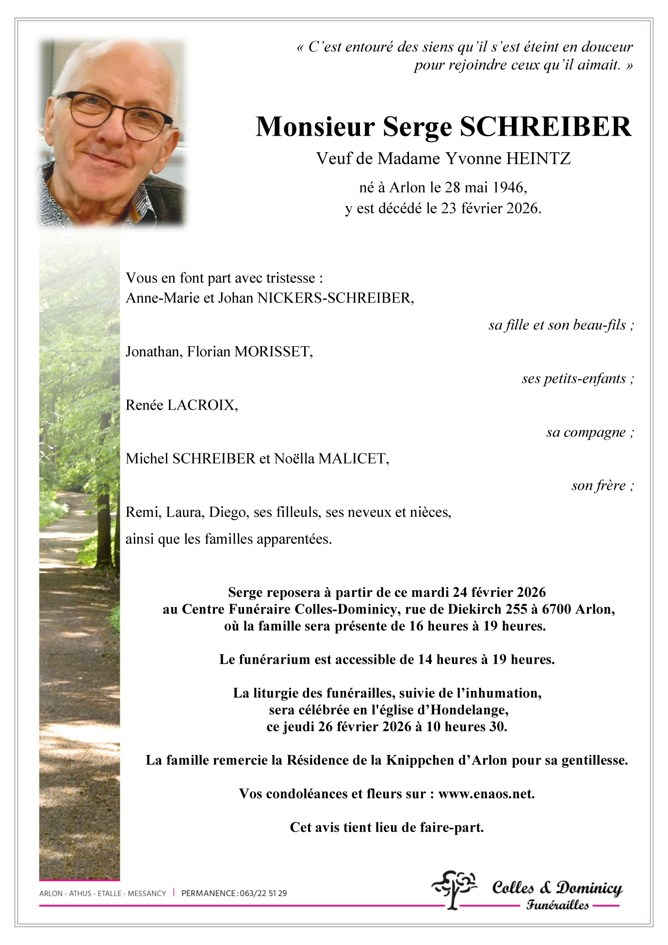 Décédé à Arlon (6700) le lundi 23 février 2026 à l'âge de 79 ans