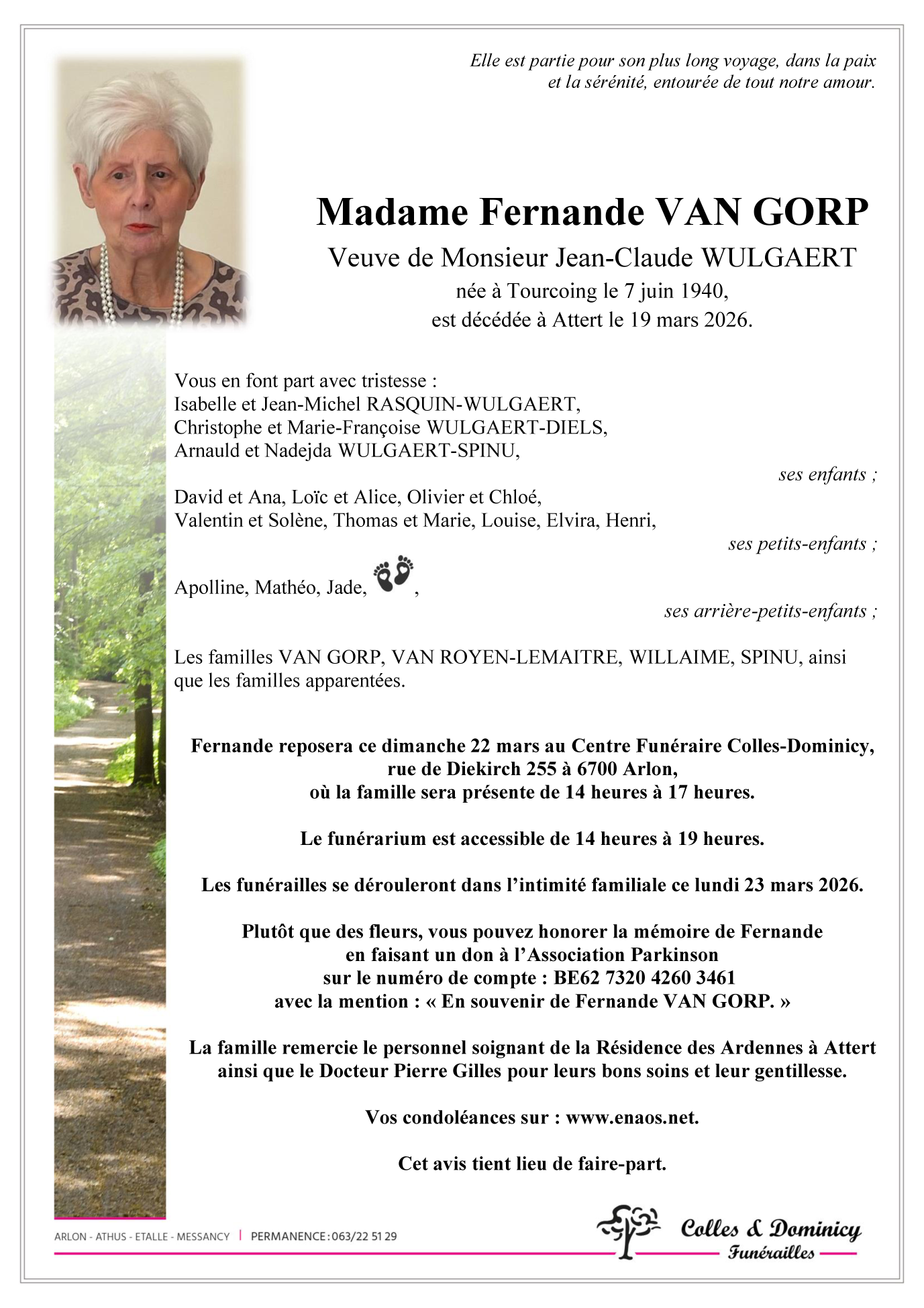Madame Fernande VAN GORP
