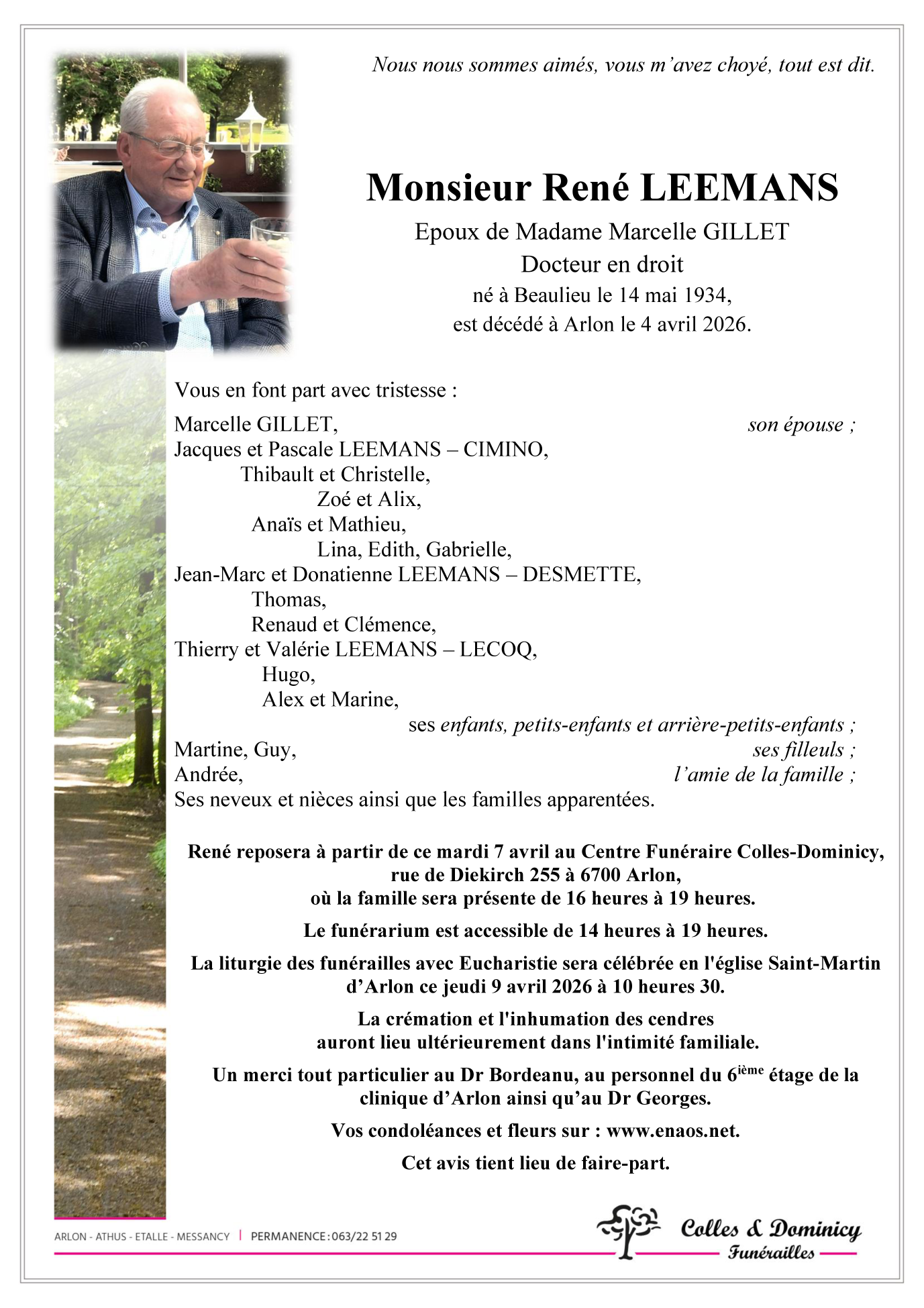 Décédé à Arlon (6700) le samedi 4 avril 2026 à l'âge de 91 ans