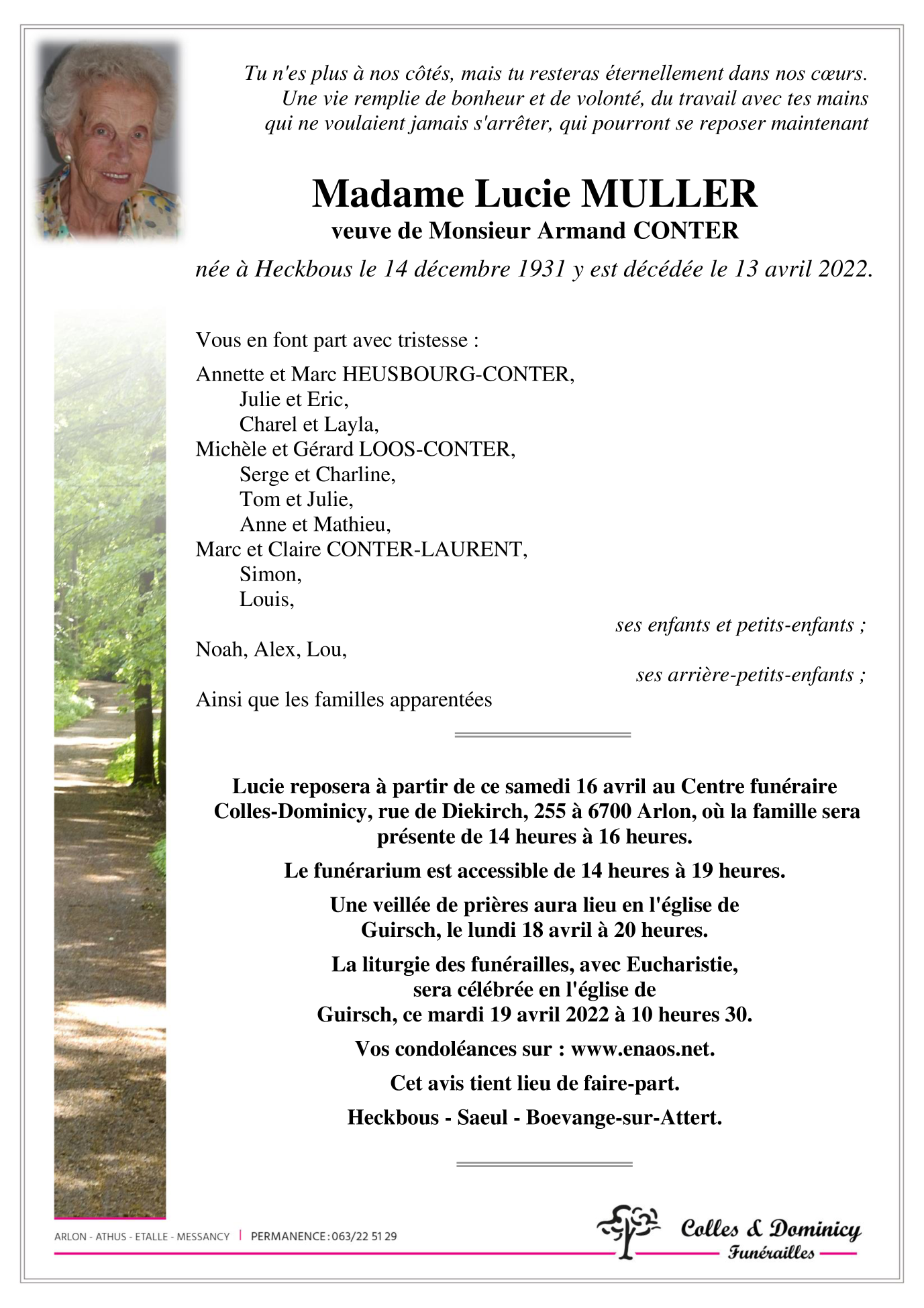 Décédée à Heckbous (6700) le mercredi 13 avril 2022 à l'âge de 90 ans