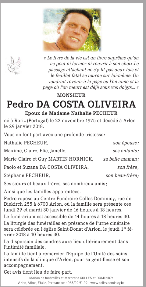 le lundi 29 janvier 2018 à l'âge de 42 ans