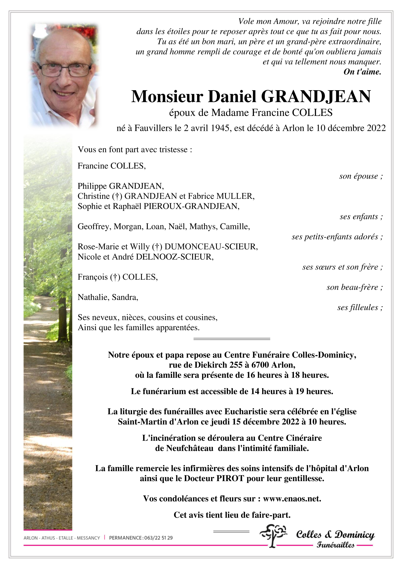 Décédé à Arlon (6700) le samedi 10 décembre 2022 à l'âge de 77 ans