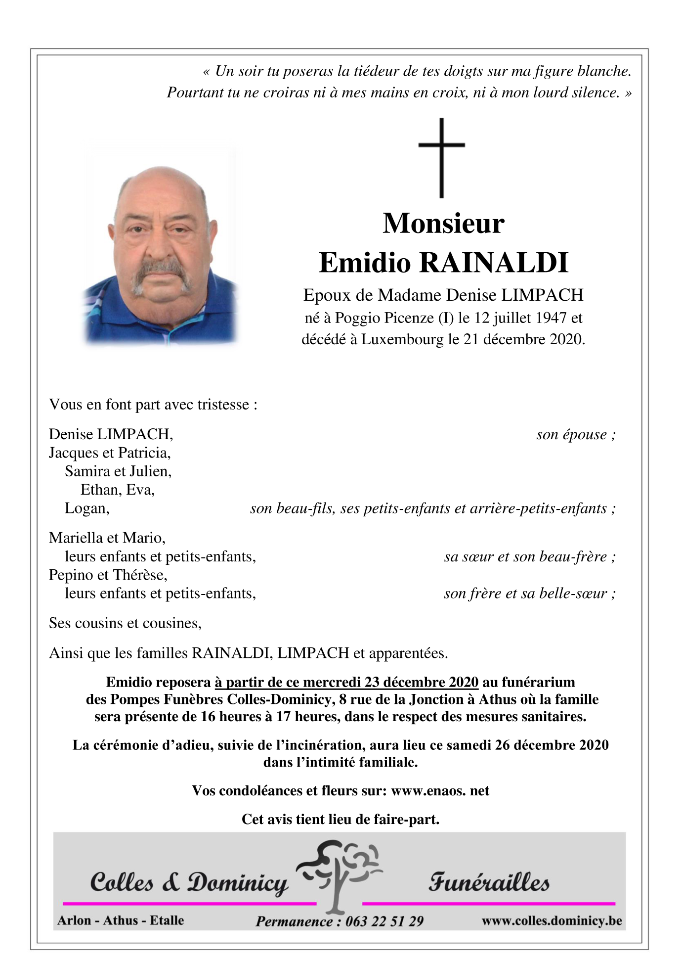 Décédé à Luxembourg (Luxembourg) le lundi 21 décembre 2020 à l'âge de 73 ans