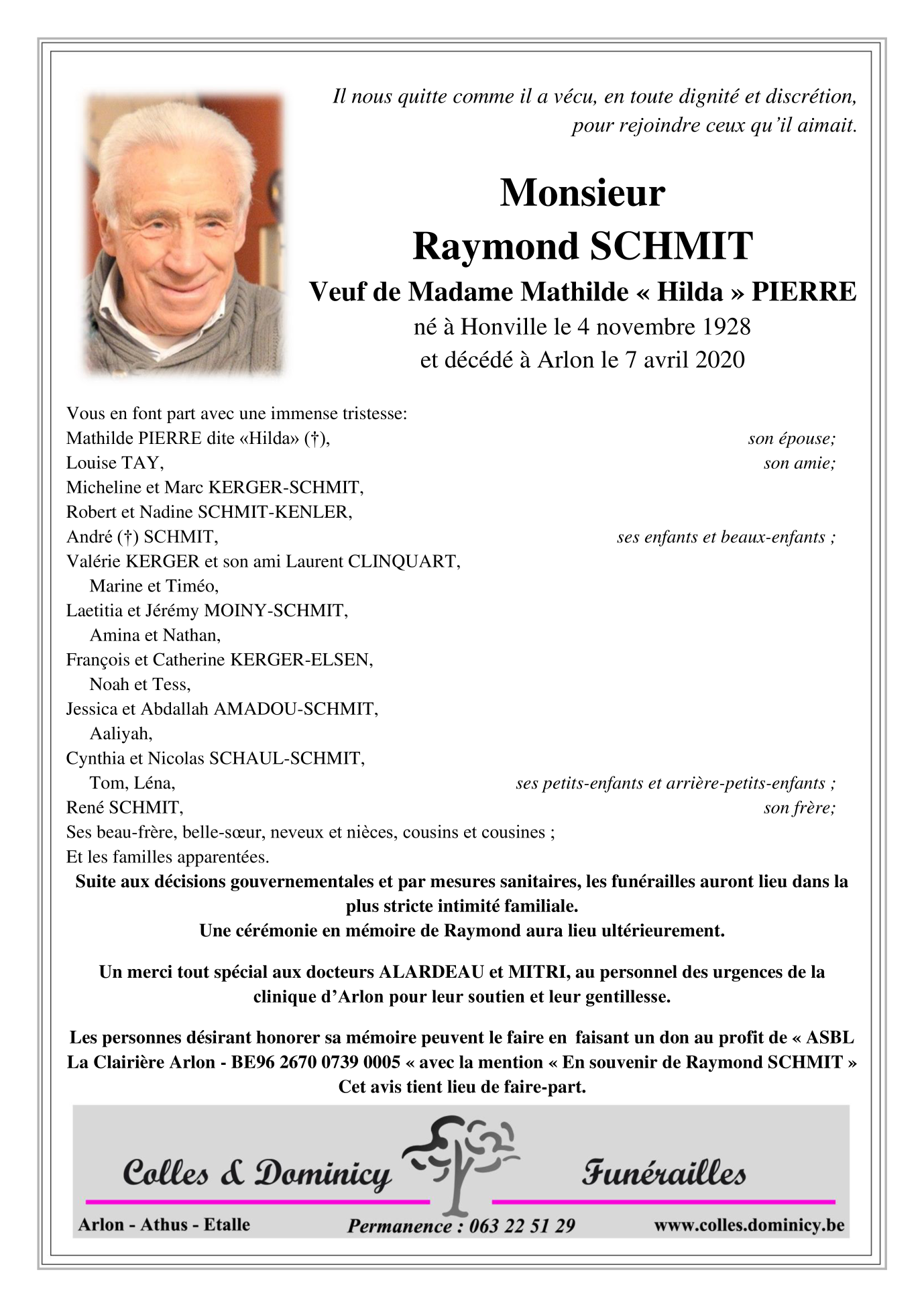 Décédé à Arlon (6700) le mardi 7 avril 2020 à l'âge de 91 ans