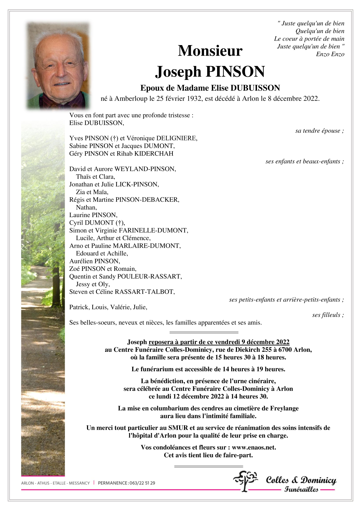 Décédé à Arlon (6700) le jeudi 8 décembre 2022 à l'âge de 90 ans