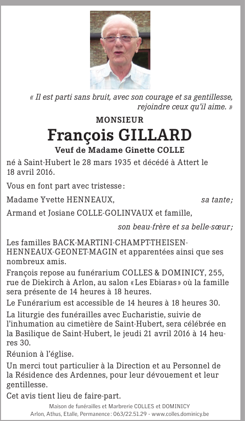 Veuf de Madame Ginette COLLE
