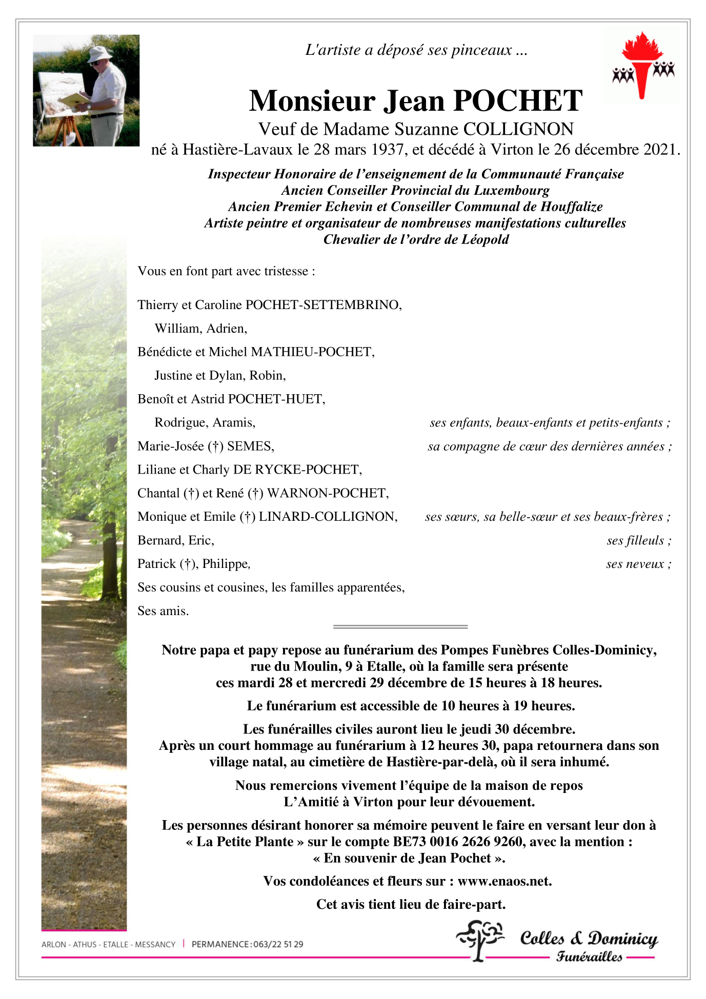 Décédé à Virton (6760) le dimanche 26 décembre 2021 à l'âge de 84 ans