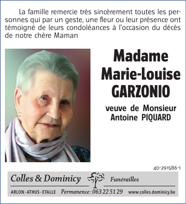 Décédée à Attert (6717) le lundi 19 mars 2018 à l'âge de 102 ans