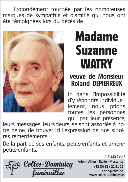 Décédée à Messancy (6780) le lundi 24 février 2020 à l'âge de 85 ans