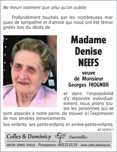 Décédée à Arlon (6700) le jeudi 1 décembre 2016 à l'âge de 91 ans