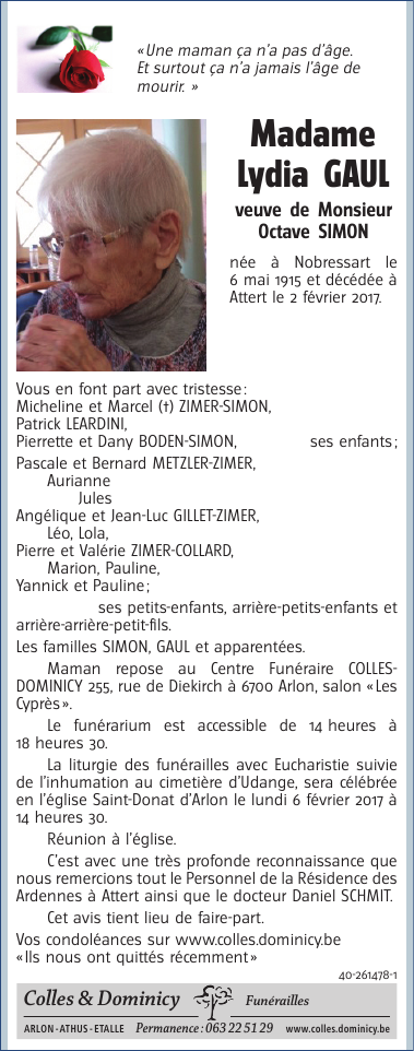 Décédée à Attert