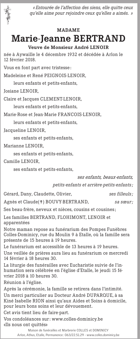 Veuve de Monsieur André LENOIR