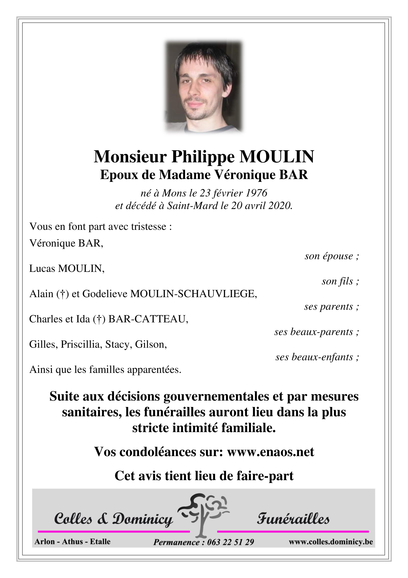 Décédé à Saint-Mard (6762) le lundi 20 avril 2020 à l'âge de 44 ans