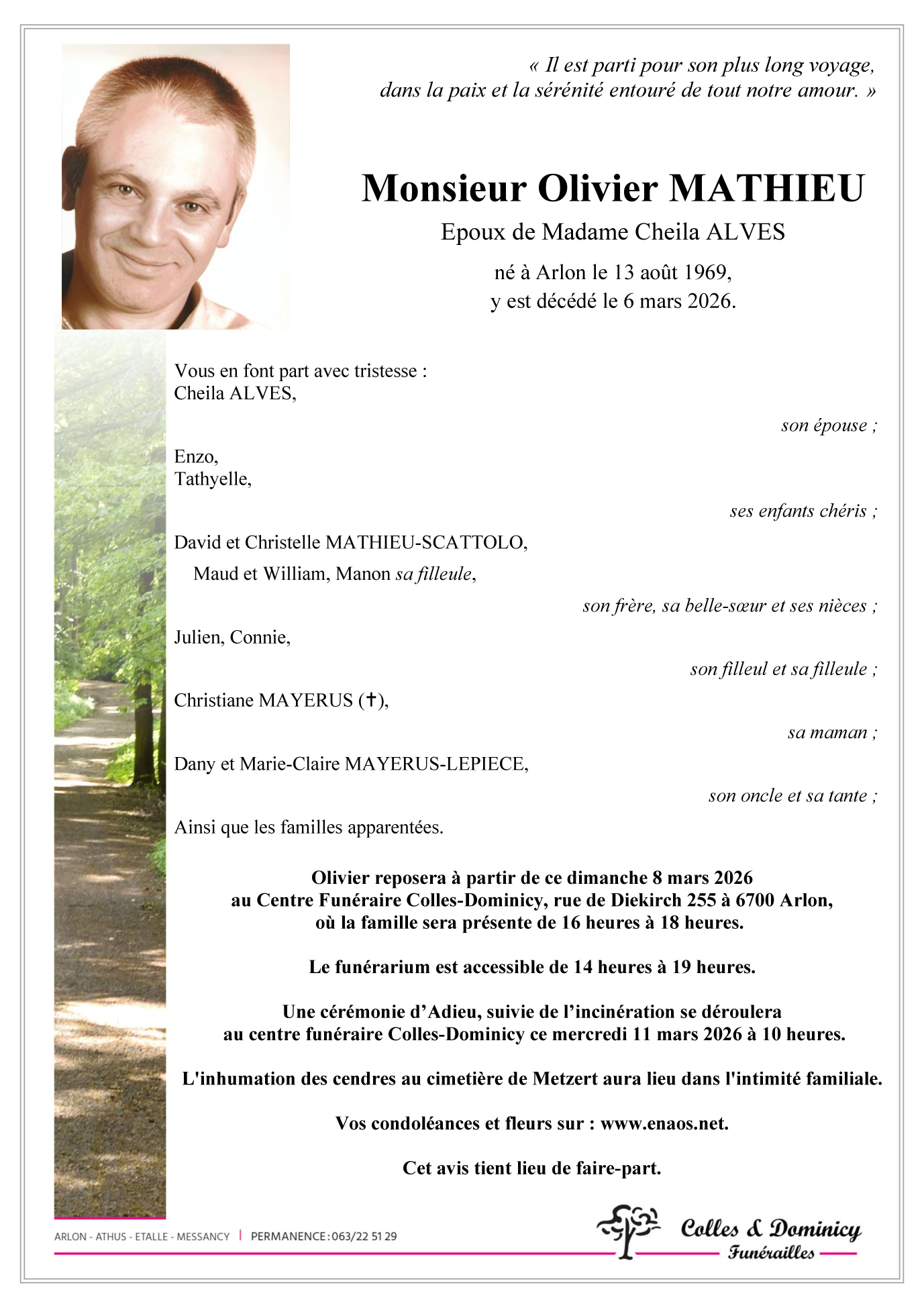 Décédé à Arlon (6700) le vendredi 6 mars 2026 à l'âge de 56 ans