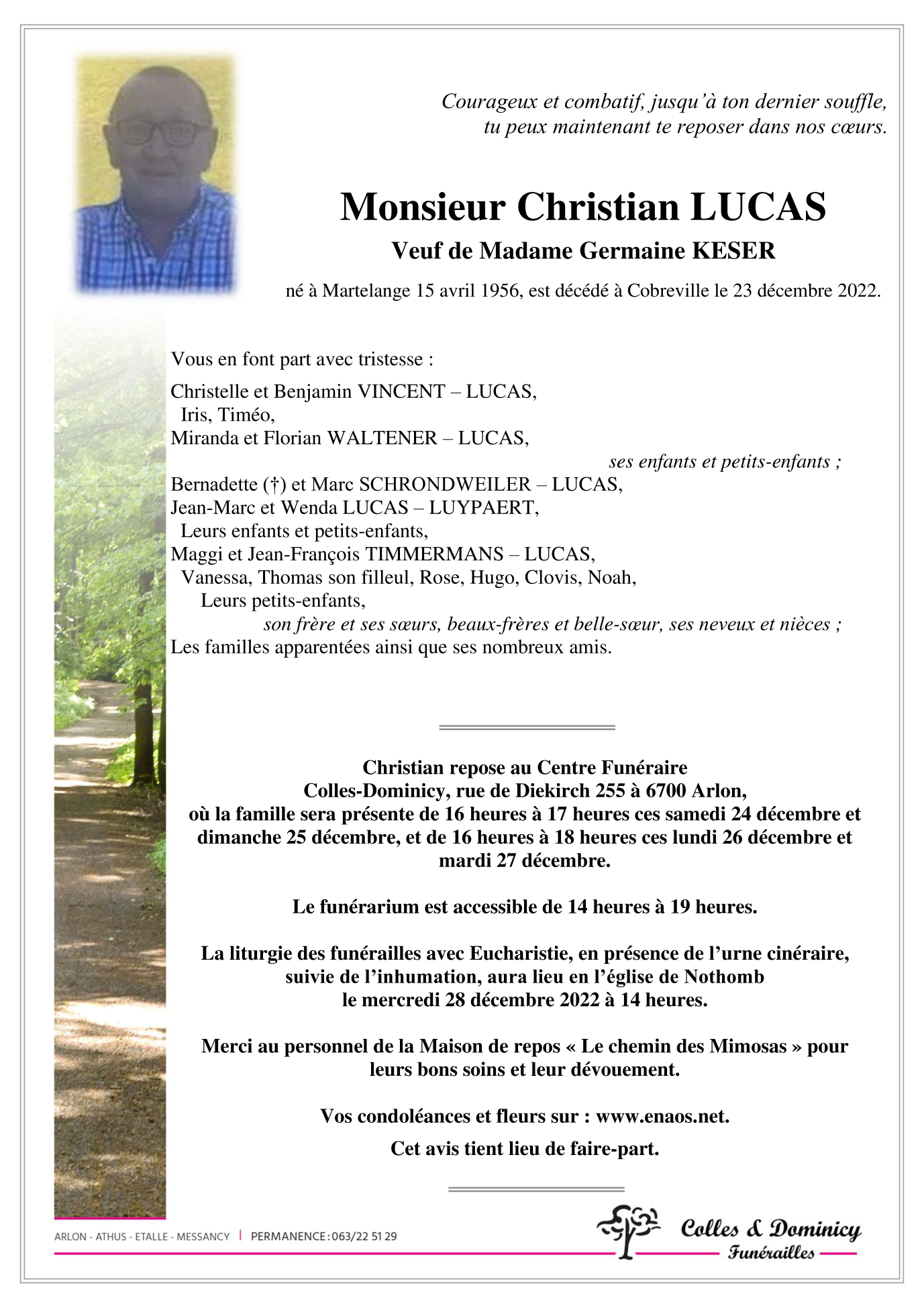 Décédé à Vaux-sur-Sure (6640) le vendredi 23 décembre 2022 à l'âge de 66 ans