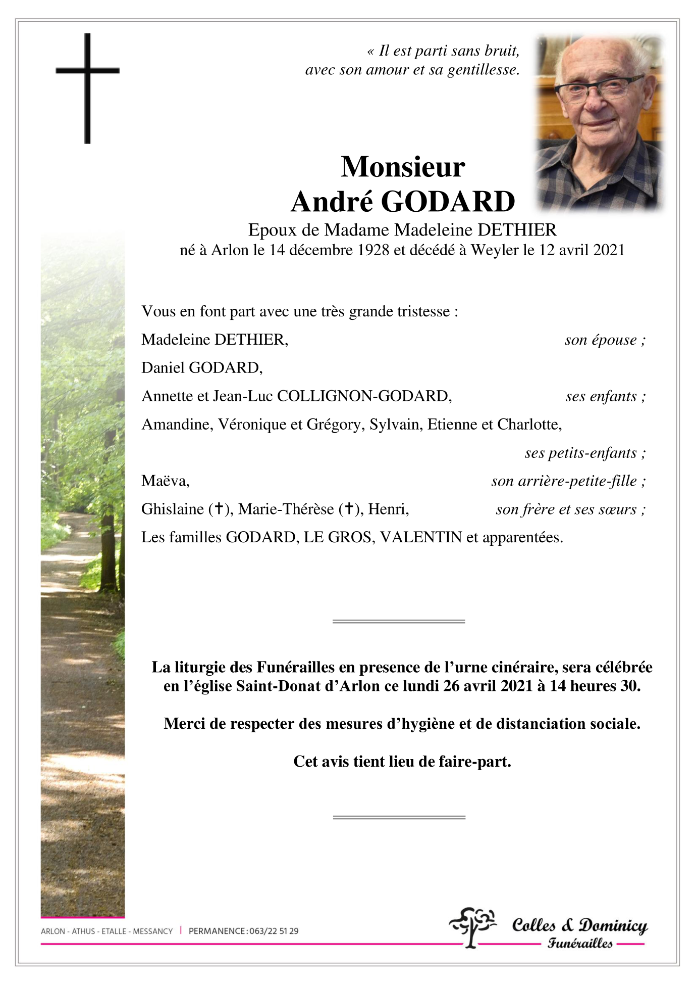 Décédé à Weyler (6700) le lundi 12 avril 2021 à l'âge de 92 ans
