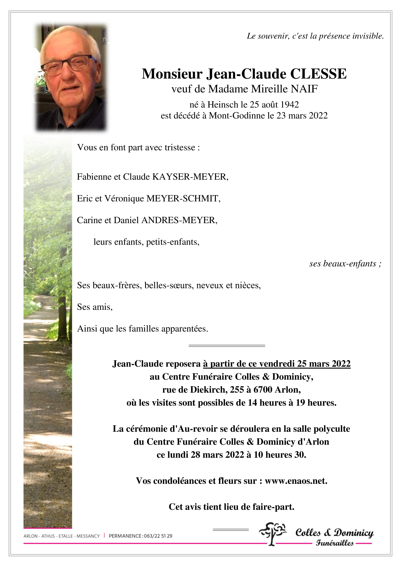 Veuf de Madame Mireille NAIF