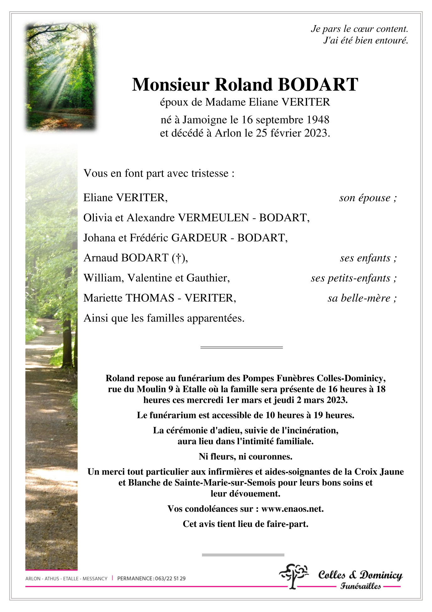 Décédé à Arlon (6700) le samedi 25 février 2023 à l'âge de 74 ans