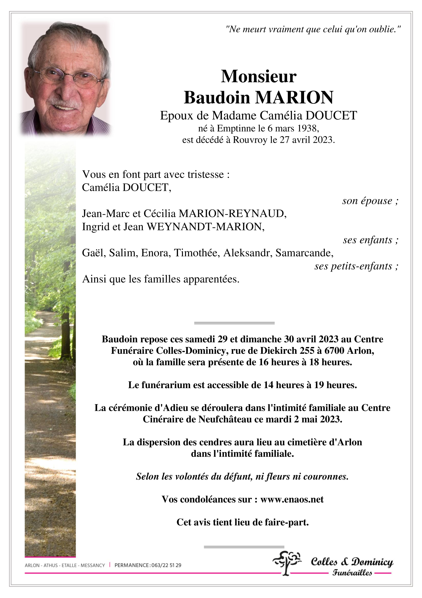 Décédé à Rouvroy (6767) le jeudi 27 avril 2023 à l'âge de 85 ans