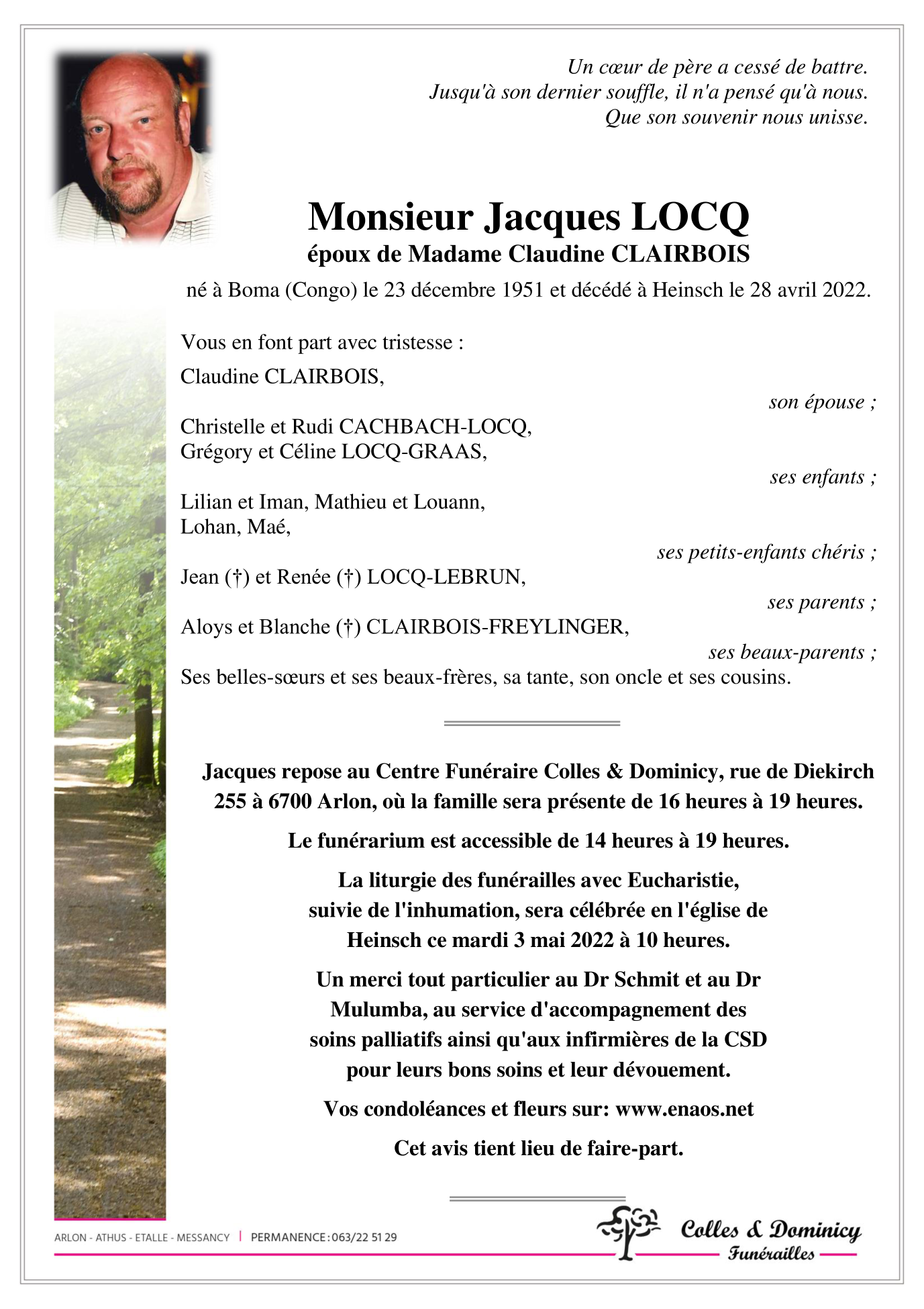 Décédé à Heinsch (6700) le jeudi 28 avril 2022 à l'âge de 70 ans
