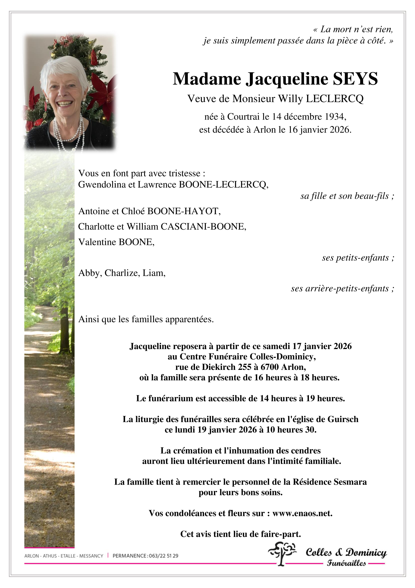 Veuve de Monsieur Willy LECLERCQ