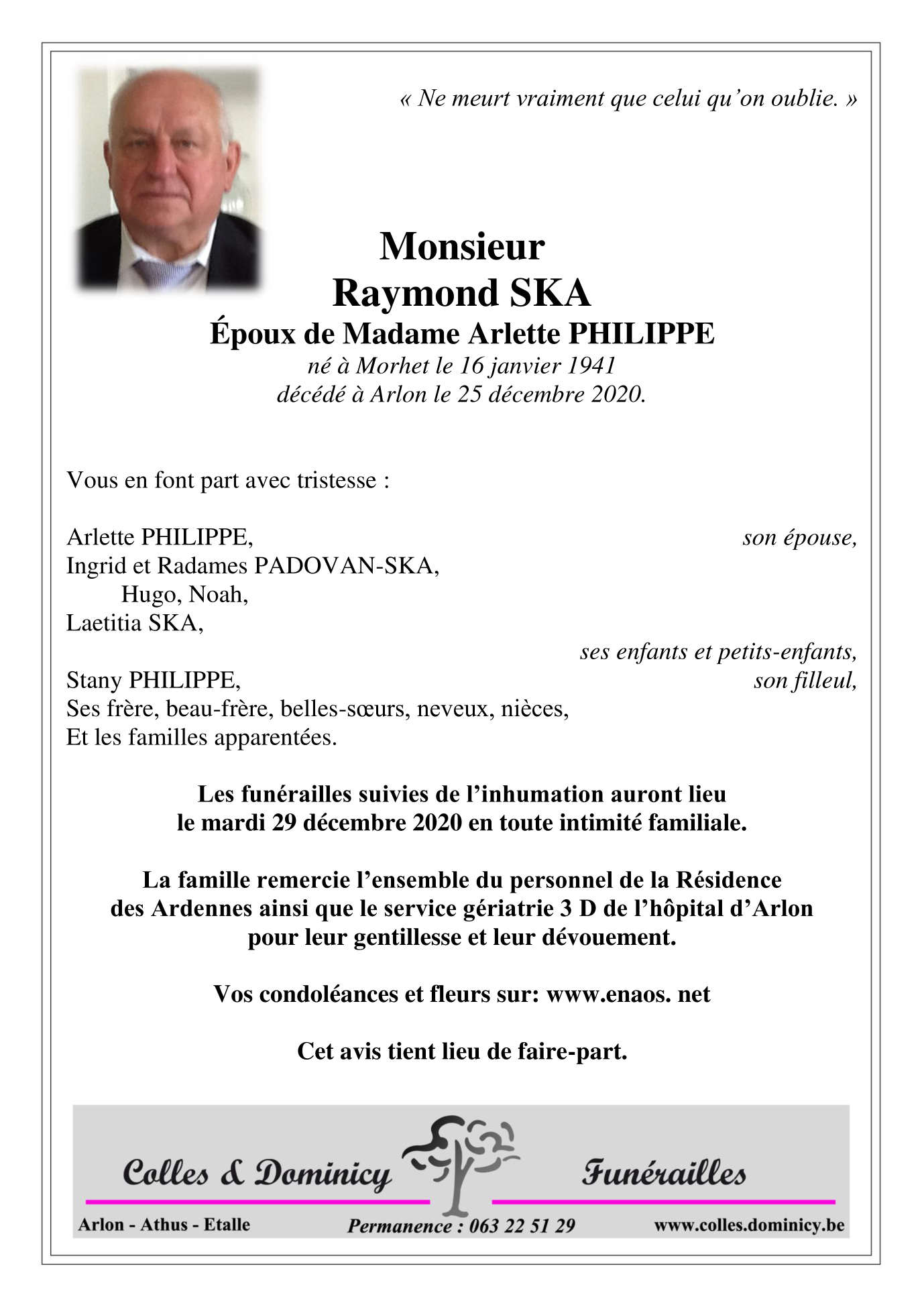 Décédé à Arlon (6700) le vendredi 25 décembre 2020 à l'âge de 79 ans