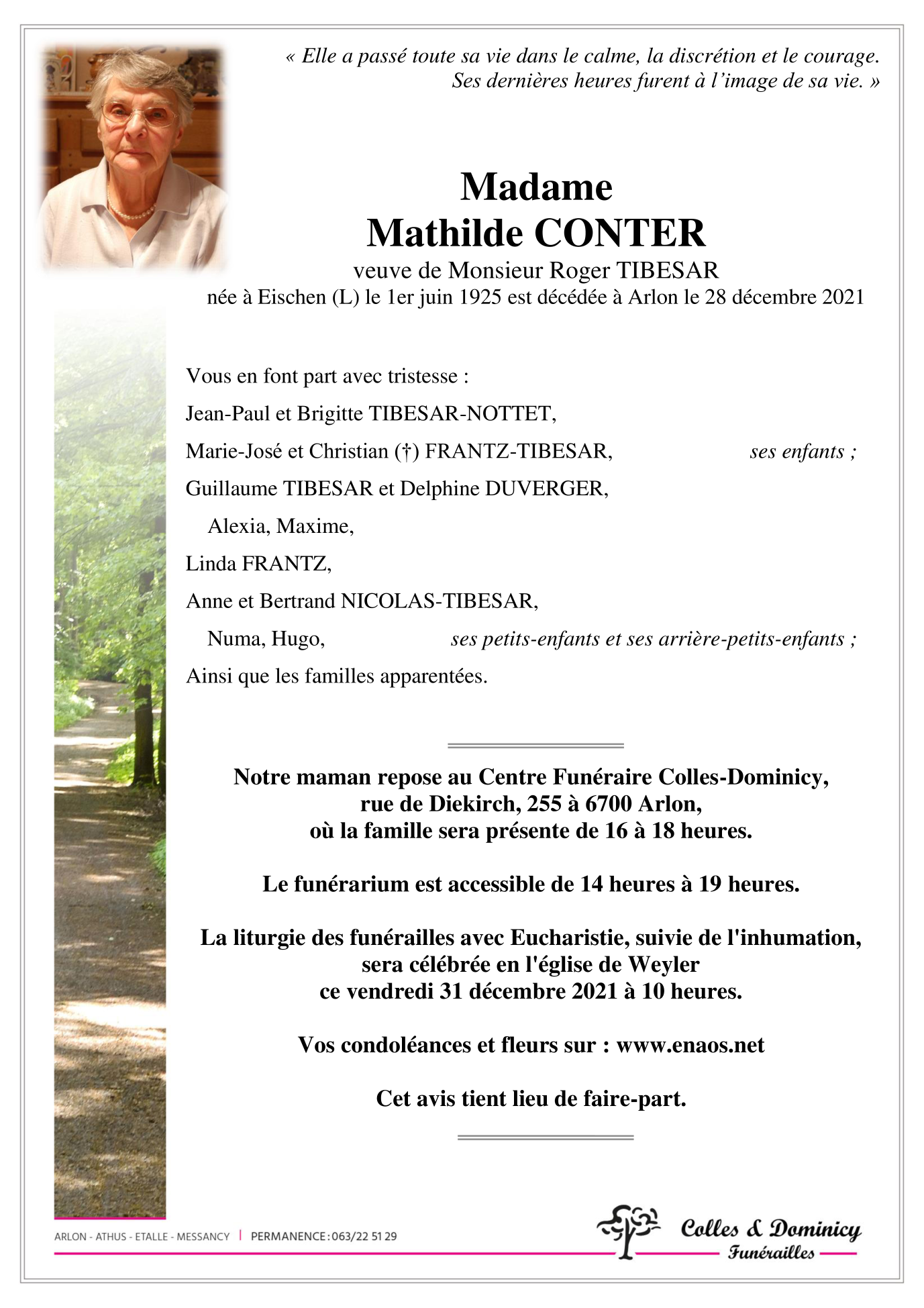 Veuve de Monsieur Roger TIBESAR